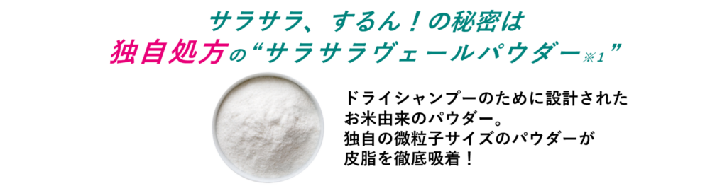 髪の根元や髪全体にスプレーすると、独自のサラサラヴェールパウダー※1が髪をサラサラにコーティング。驚くほどのサラサラ髪に仕上げます。