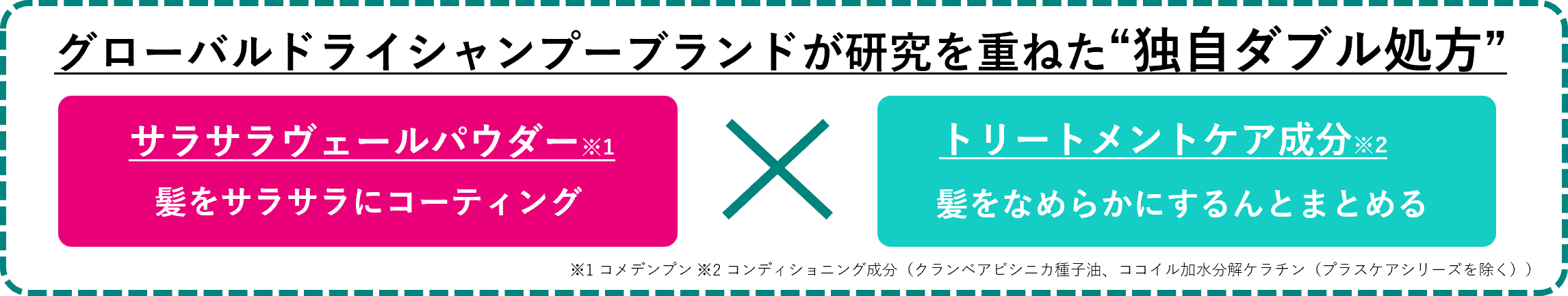 ※1 コメデンプン ※2 コンディショニング成分(クランベアビシニカ種子油、ココイル加水分解ケラチン(プラスケアシリーズを除く))