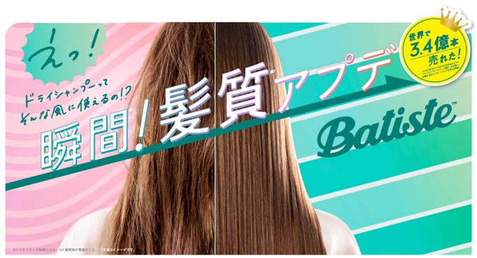 バティスト ドライシャンプーを使うだけで、瞬間※3で髪の手触りが変わり、まるで髪質※2が変わったような感覚になります。