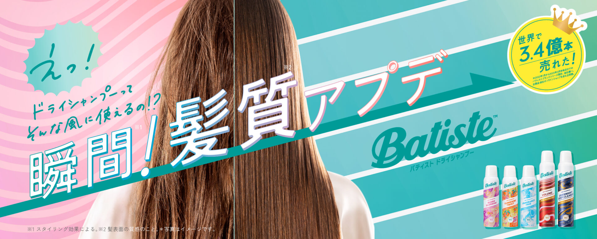 “使った瞬間に違いがわかる”バティストならではの髪質※2アプデ感を、ぜひ店頭でお試しください。